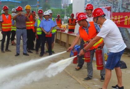 6月16日是“全國(guó)安全生產(chǎn)宣傳咨詢?nèi)铡?。?dāng)日,龍巖城發(fā)集團(tuán)與市城投公司組織人員分別前往中心城區(qū)華蓮西路一期、火車(chē)站站前高架橋、龍巖大橋高架橋、龍巖大道四期下穿工業(yè)路通道等四個(gè)項(xiàng)目工地,開(kāi)展安全生產(chǎn)宣傳活動(dòng)。圖為工作人員現(xiàn)場(chǎng)指導(dǎo)工人使用滅火器。