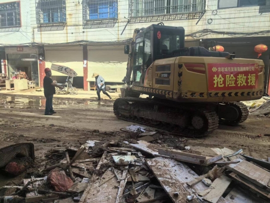 6月20日,市政集團(tuán)搶險(xiǎn)救災(zāi)突擊隊(duì)到達(dá)武平巖前鎮(zhèn)。現(xiàn)場(chǎng)一片狼藉,不僅整個(gè)片區(qū)斷水?dāng)嚯姡◤V街、環(huán)城路等主要街道被淤泥及各類建筑垃圾覆蓋,救援人員的食宿也沒辦法得到保證。