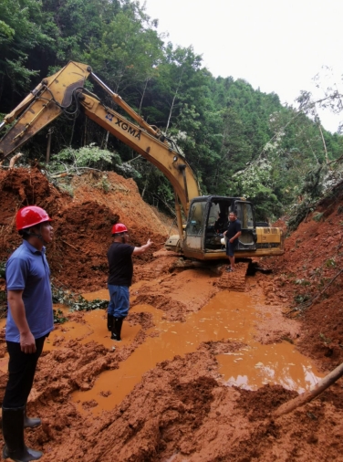 隨后,市政集團(tuán)搶險(xiǎn)救援突擊隊(duì)接到了搶修澄邦村村道的任務(wù),短短5公里3米寬的村道,每幾十米就有一個(gè)坍塌,大型的拖車無(wú)法將挖掘機(jī)運(yùn)送至村里進(jìn)行搶險(xiǎn)救災(zāi)。經(jīng)過(guò)突擊隊(duì)現(xiàn)場(chǎng)研究,制定了采用小型挖掘機(jī)一邊先行搶修道路一邊往澄邦村前行的方案,最后挖掘機(jī)用了5小時(shí)到達(dá)村里開始搶險(xiǎn)工作。