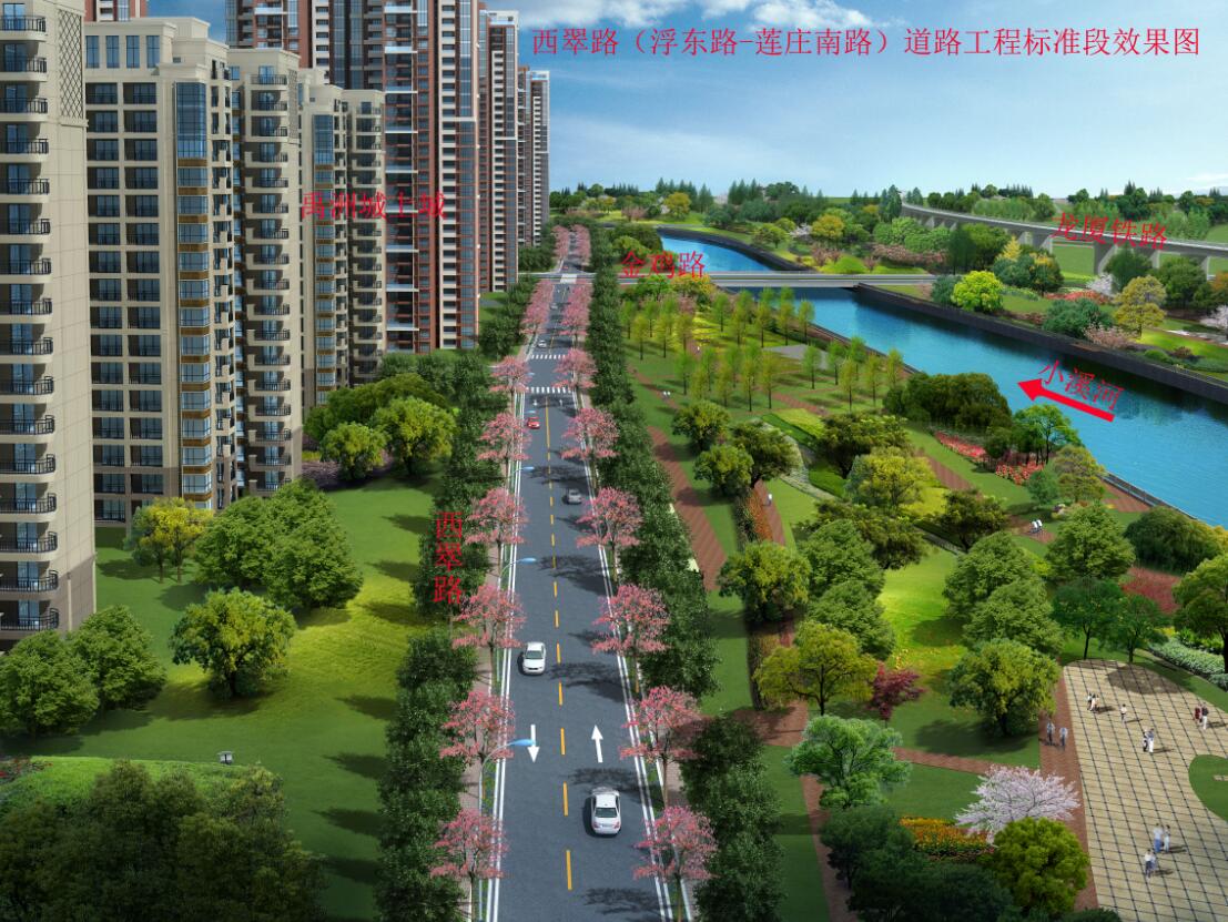 西翠路項(xiàng)目起于浮東路,終于蓮莊南路,全長(zhǎng)2129米,寬15米,項(xiàng)目總投資1億元。